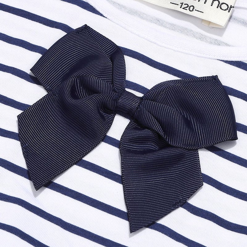 おすすめ①ボーダー柄リボン付き ギャザー切り替え チュニックTシャツ