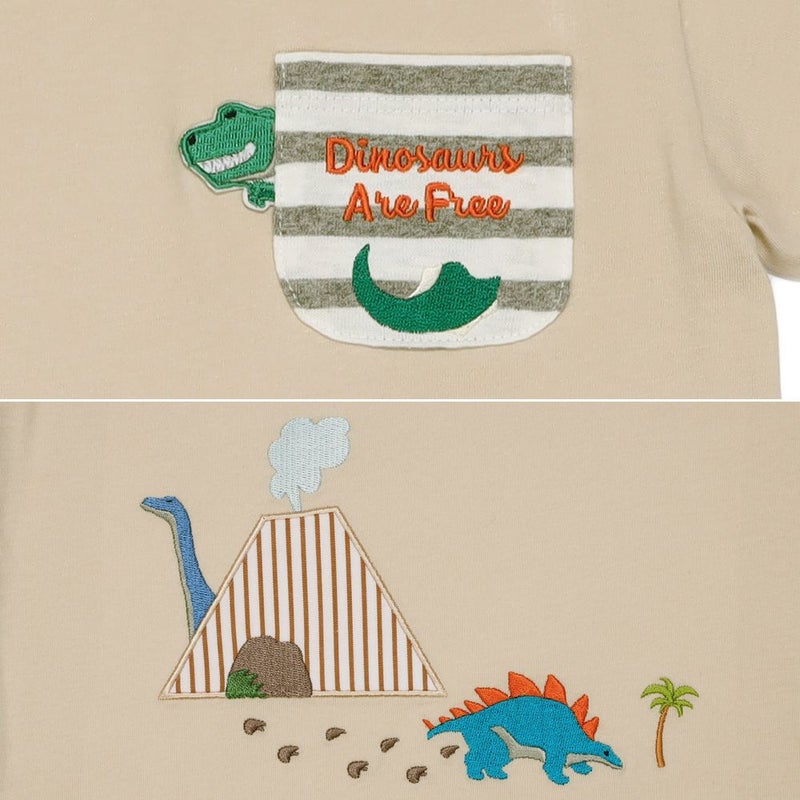 ベージュとブルーの淡い2色展開で、やさしいカラーが恐竜たちの存在感をより一層引き立てます。