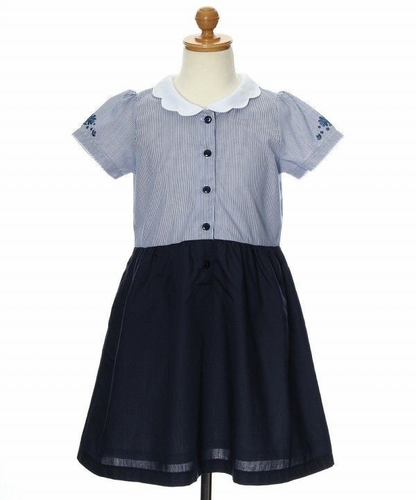 上身頃はストライプ柄でお袖にお花刺繍があって可愛い♪