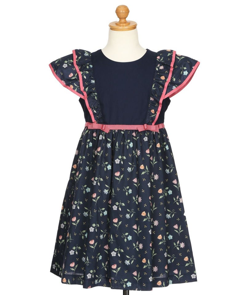 日本製 綿100% リバティプリント使用 花柄 フリル ワンピース