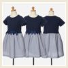 子供服 女の子 ボーダー柄リボン付きドッキングワンピース ネイビー(06) 正面