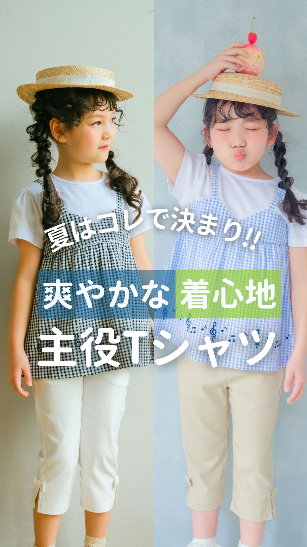 ベビー服 女の子 こども服 春服 夏服 重ね着風 キッズ ギンガムチェック