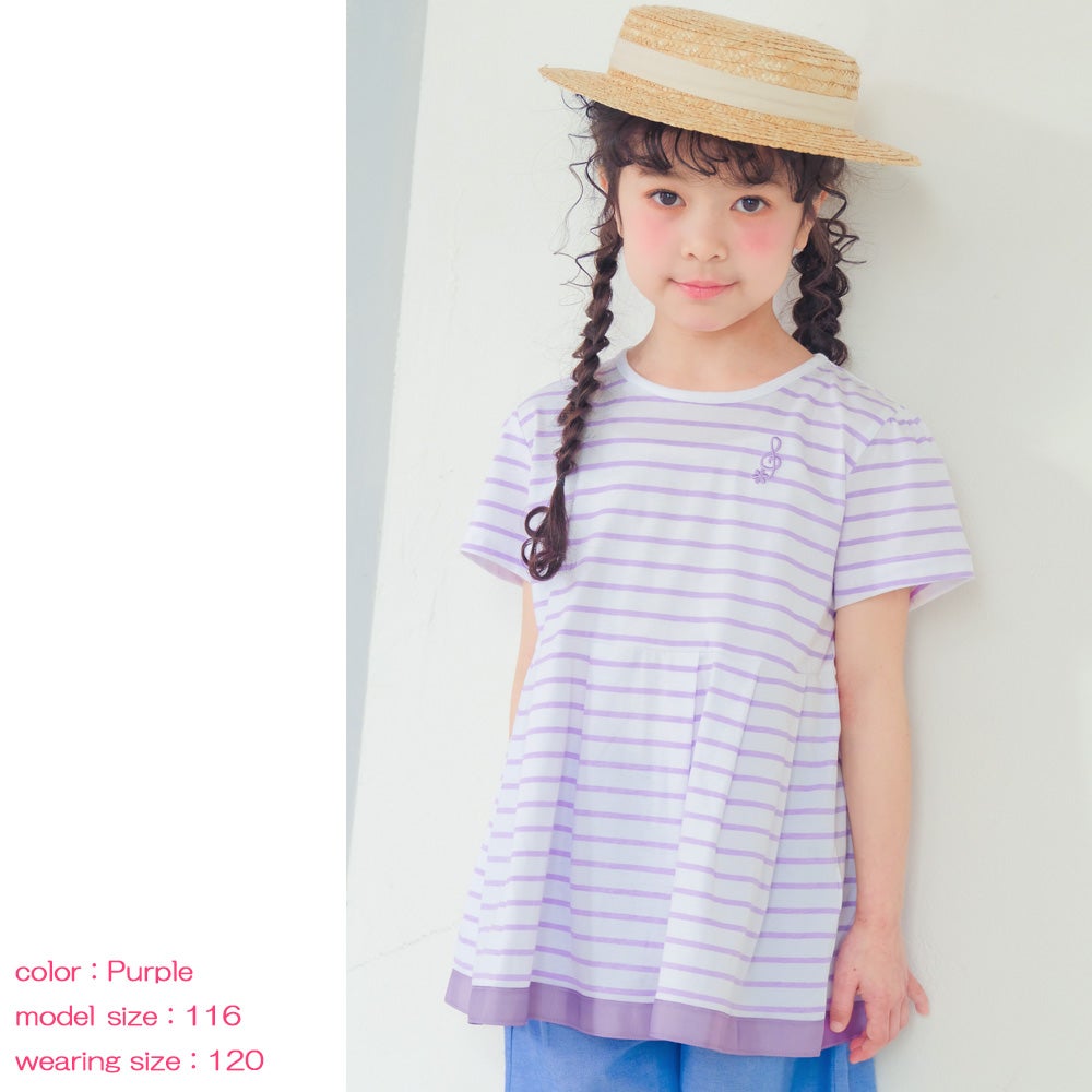 綿100%ボーダー切替音符モチーフTシャツ
