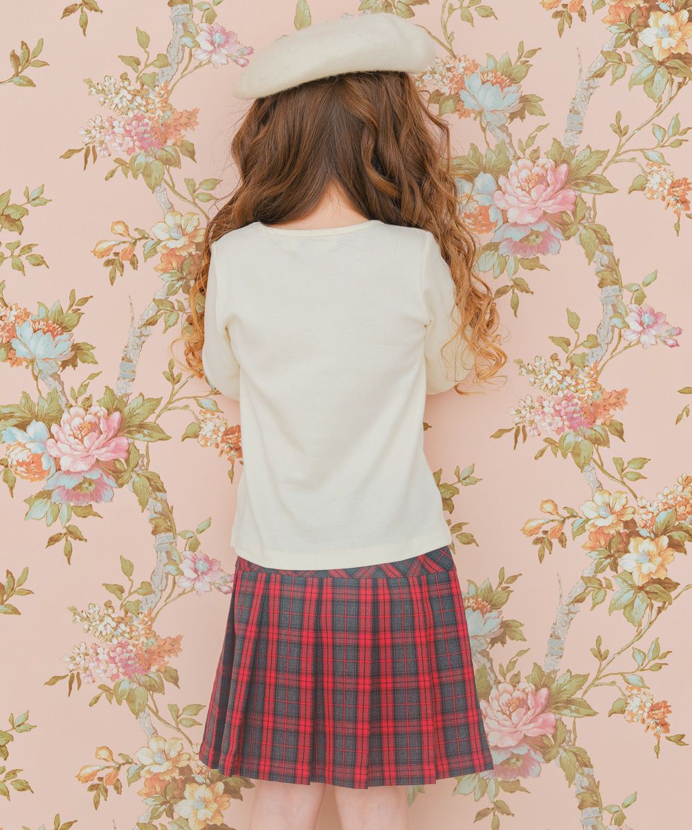 【アウトレットセール秋冬 160cm限定】綿100%女の子モチーフ&チェック柄ハート&音符Tシャツ