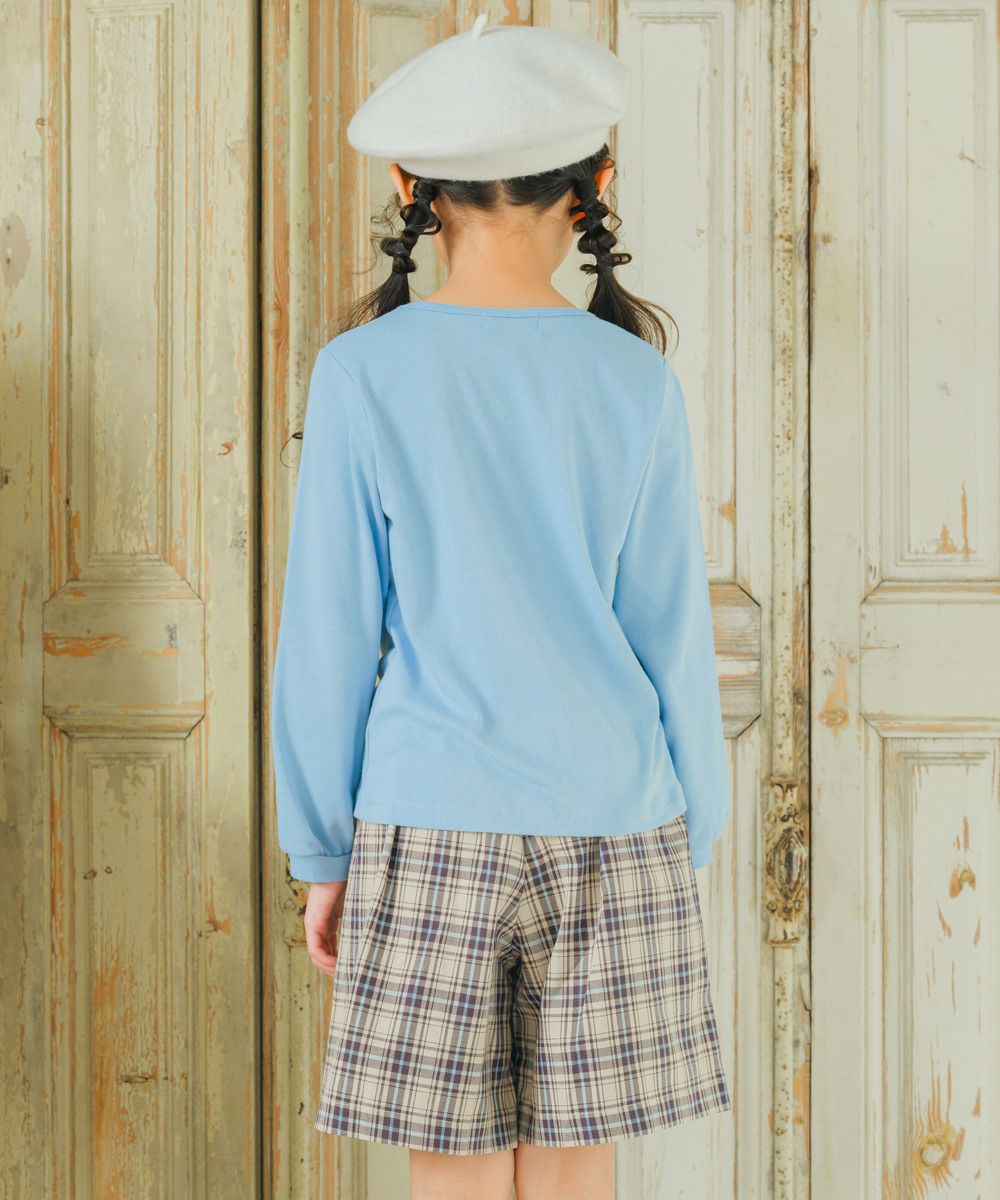 【アウトレットセール秋冬 120cm限定】リボンつきボリューム袖無地Tシャツ