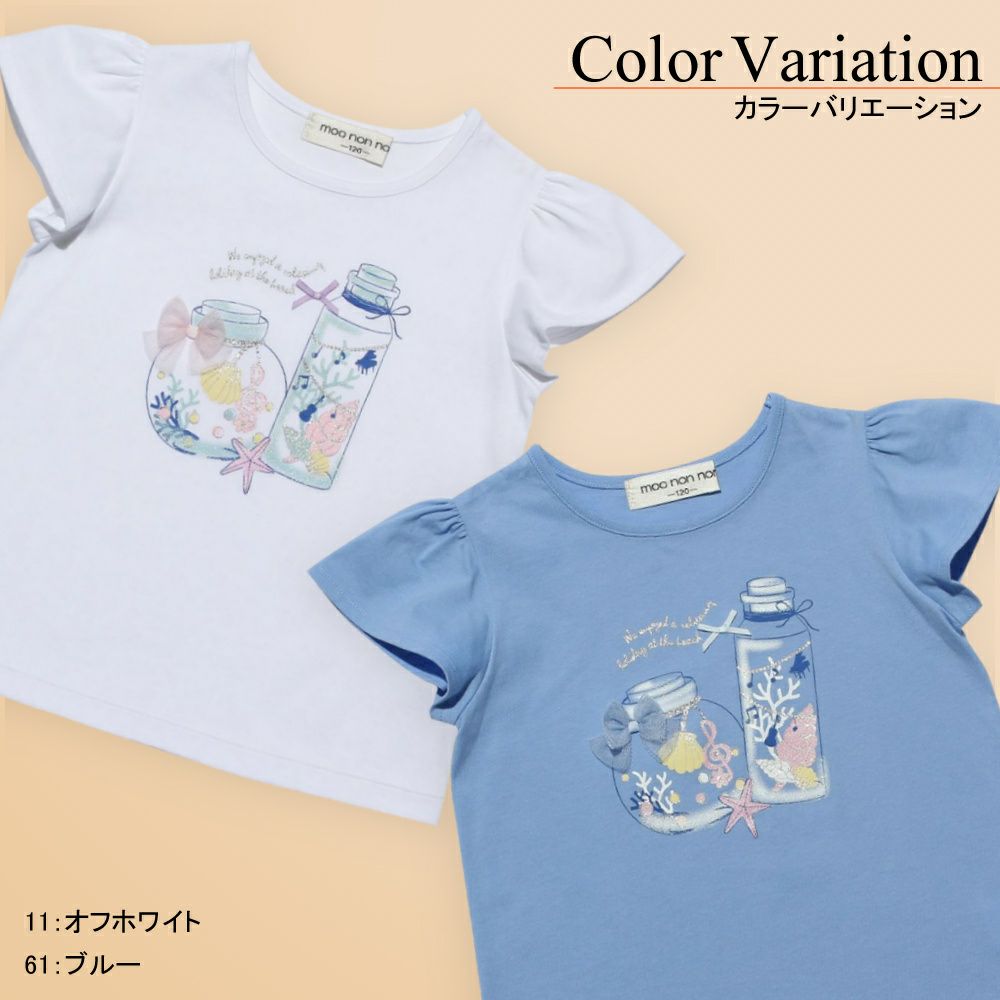 綿100%貝殻&音符ガラス瓶プリントTシャツ