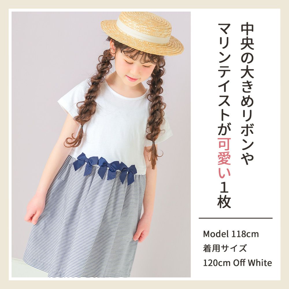 ベビーサイズストライプ柄ライン&リボン付きワンピース